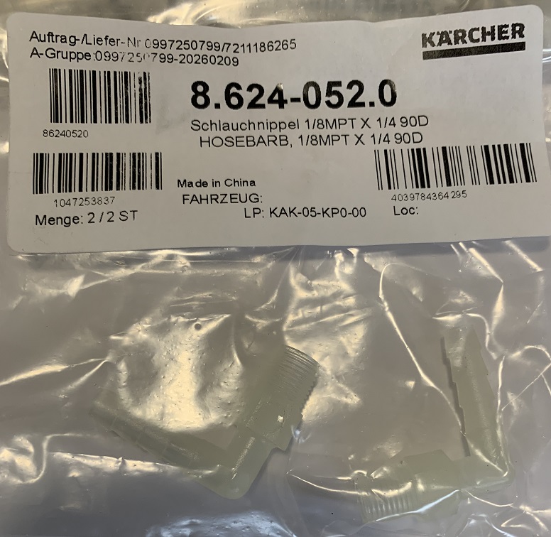HOSEBARB, 1/8MPT X 1/4 90D