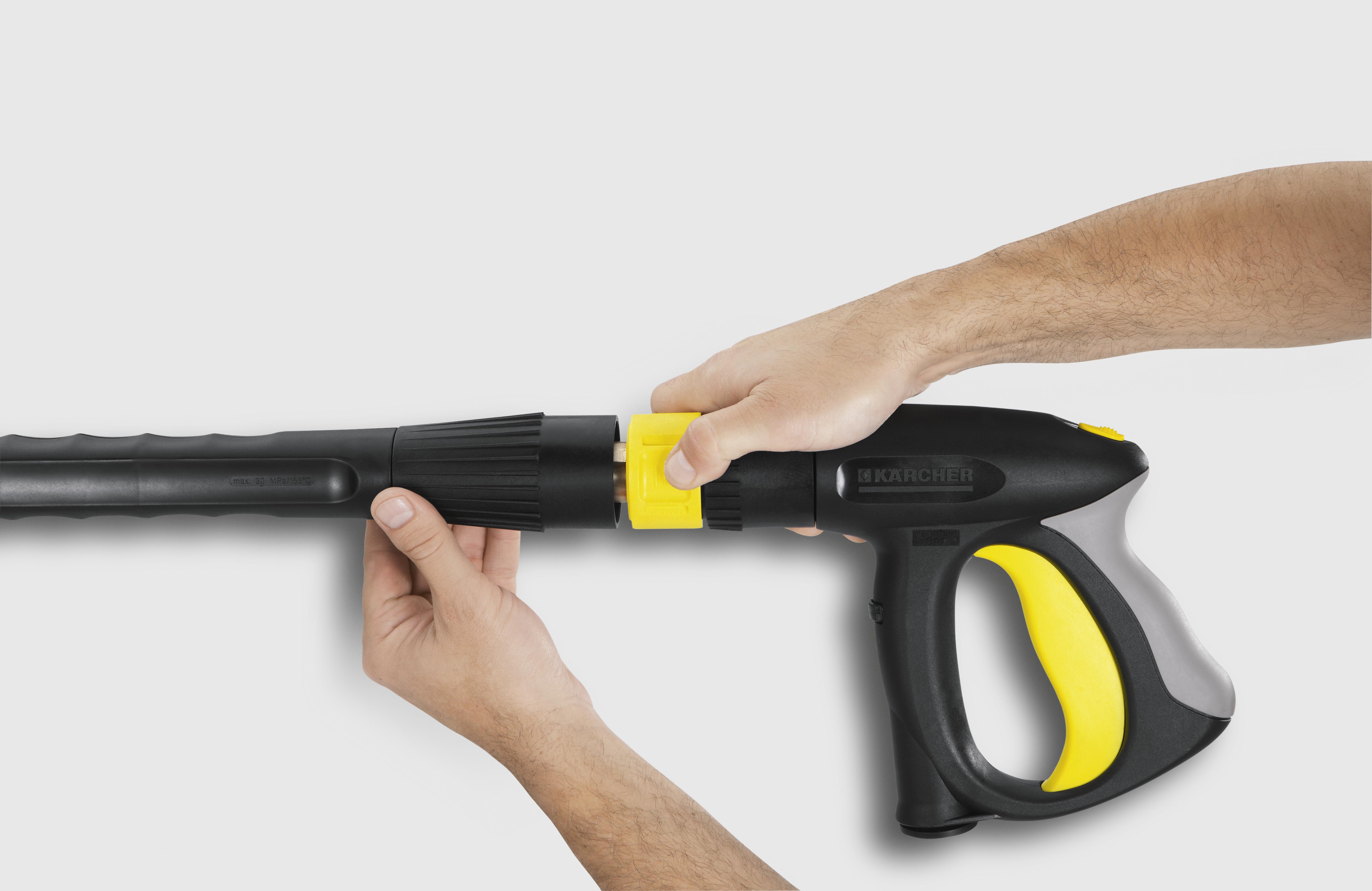 Savienojums pieskrūvejas pie mazgāšanas mašīnas pistoles, savieno pistoli ar ātri noņemamo sakabi.