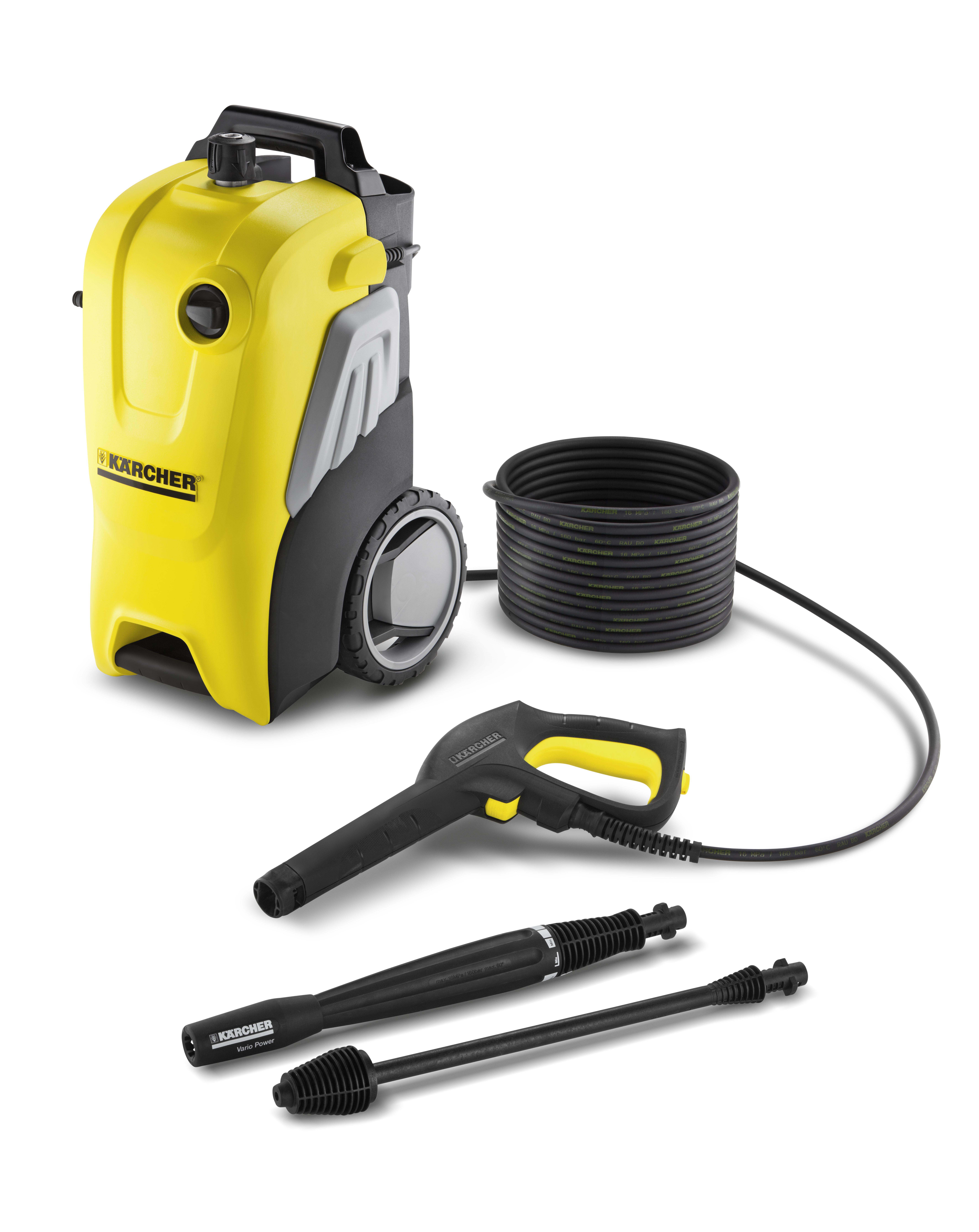 Vienkārši pievienojama augstspiediena šļūtene un augstspiediena strūklas pistole.