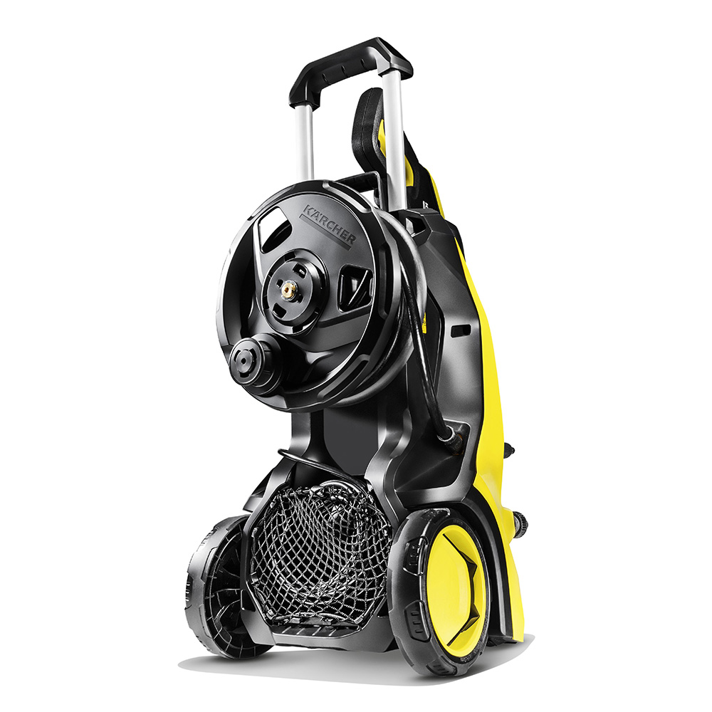 Ar K 5 Premium Full Control Plus spiediena mazgātāju ar šļūtenes spoli Jūs viegli varēsiet pielāgot pareizo spiedienu attiecīgajam darbam. Strūklas veidu var izvēlēties vienkārši pagriežot 3-in-1 Multi Jet uzgali. Maksimālai kontrolei spiediena iestatījumu var pārbaudīt uz pistoles izvietotajā LED displejā un regulēt ar pluss un minuss pogām. Tas nozīmē, ka Jums nav jāmaina strūklas caurule — pat, lai pārslēgtos no augstspiediena uz mazgāšanas līdzekļa iestatījumu. Tīrīšanas darbu pārtraukumos Jūs varat novietot pistoli un strūklas cauruli uz iekārtass. Turklāt pateicoties praktiskajai Plug 'n' Clean sistēmai, Jūs ar vienu rokas kustību varat nomainīt mazgāšanas līdzekli, kā arī pārbaudīt tā uzpildes līmeni. Šim spiediena mazgātājam ir pazemināts smaguma centrs, praktisks šļūtenes turētājs un robusta pamatne, ko var izmantot arī kā otru pārvietošanas rokturi. Spiediena mazgātājs ir ideāli piemērots noturīgu netīrumu noņemšanai, un tā mazgāšanas jauda ir 40 m²/h.