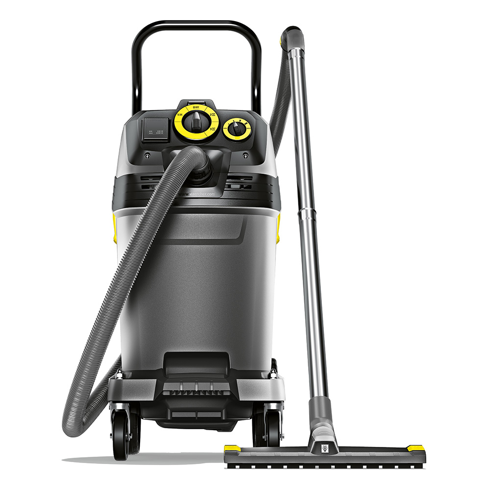 Профессиональный пылесос NT 50/1 Tact Te отличается большой многофункциональностью. Пылесос включает в себя 50-литровый контейнер с регулируемой рукояткой толкаемого типа, сливной шланг, а также встроенную розетку для электроинструмента.